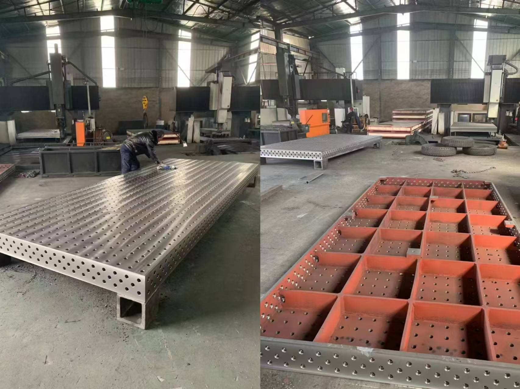வலுவான சுமை தாங்கும் திறன்: பொதுவாக, D28 வெல்டட் டேபிள்களின் கட்டமைப்பு வடிவமைப்பு மற்றும் பொருள் பயன்பாடு ஆகியவை அதிக சுமை தாங்கும் திறனை வழங்குகின்றன, பெரிய பற்றவைக்கப்பட்ட கூறுகளின் எடை மற்றும் வெல்டிங் செயல்பாட்டின் போது ஏற்படும் மன அழுத்தத்தைத் தாங்கும். பெரிய எஃகு கட்டமைப்புகள் மற்றும் பொறியியல் இயந்திர பாகங்கள் போன்ற கனமான பற்றவைக்கப்பட்ட கூறுகளை வெல்டிங்கிற்கு,D28 வெல்டிங் அட்டவணைகள்வெல்டிங் செயல்முறையின் சுமூகமான முன்னேற்றத்தை உறுதிசெய்ய இன்னும் நிலையான ஆதரவை வழங்க முடியும்.