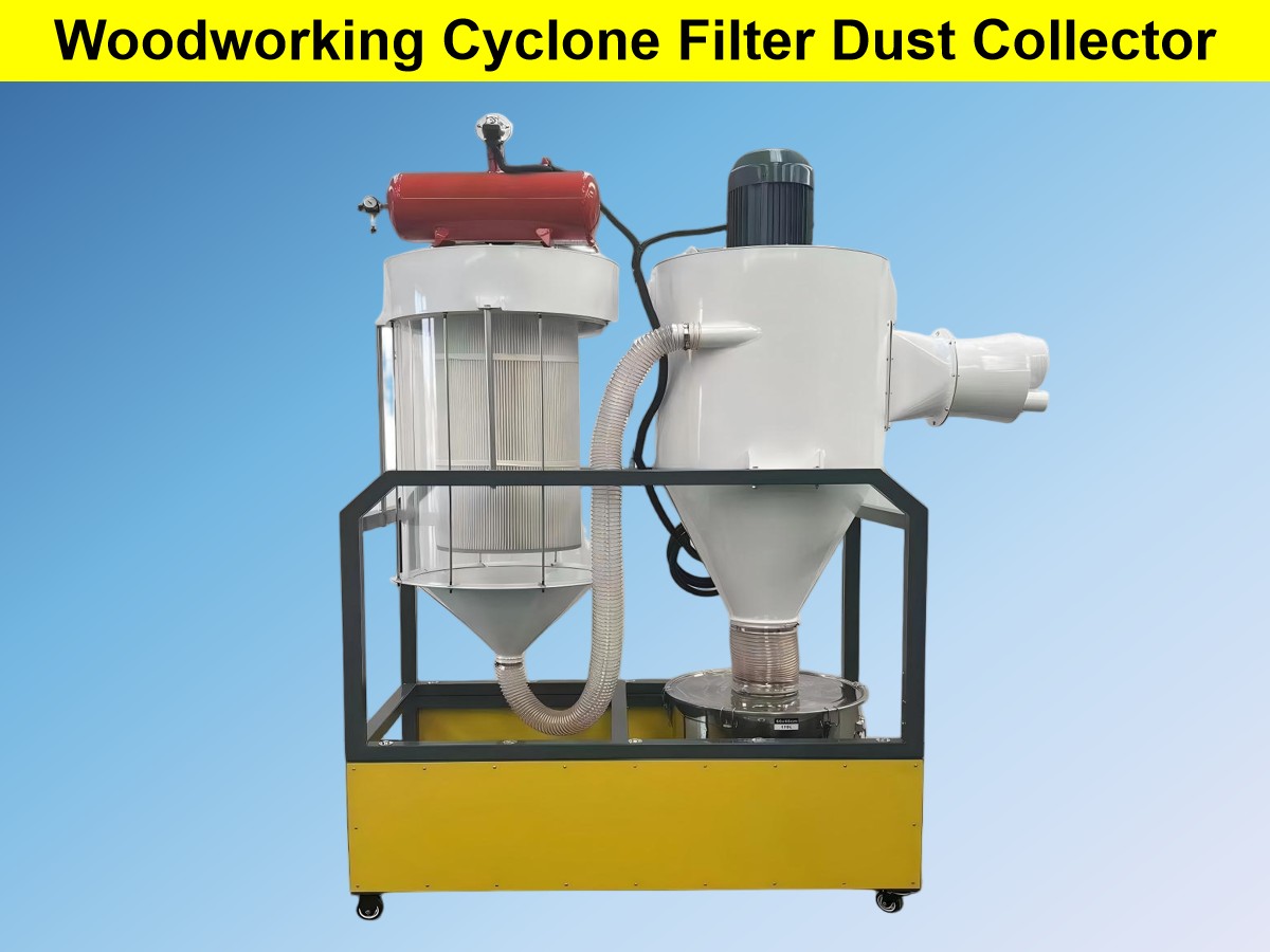 சைக்ளோன் ஃபில்டர் வகை மரவேலை தூசி சேகரிப்பான்கள் சூறாவளி பிரித்தல் மற்றும் வடிகட்டி கெட்டி வடிகட்டுதல் ஆகியவற்றின் கலவையாகும். அவை அதிக செறிவு கொண்ட கரடுமுரடான தூசியைக் கையாள்வதில் சூறாவளி தூசி சேகரிப்பாளர்களின் நன்மைகளை நன்றாக தூசியை வடிகட்டுவதில் வடிகட்டி கார்ட்ரிட்ஜ் தூசி சேகரிப்பாளர்களின் உயர்-துல்லியமான பண்புகளுடன் இணைக்கின்றன. மரவேலை பட்டறைகளில் மரத்தூள் மற்றும் மரப் பொடிகளின் பரந்த துகள் அளவு விநியோகத்திற்காக குறிப்பாக வடிவமைக்கப்பட்டுள்ளது, அவற்றின் தூசி அகற்றும் திறன் ஒற்றை அலகு உபகரணங்களை விட அதிகமாக உள்ளது.